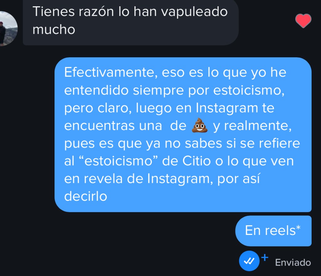 Lo siento porque, aunque parte de mí sabía que el estoicismo era más que eso, ya estaba tan saturada de escuchar frases de Meditaciones fuera de contexto —generalmente salpicadas de testosterona y proteína en polvo— que cuando alguien venía y me decía: “¿Conoces a Marco Aurelio?”, mi mente ya había sacado el cartel de NEXT.